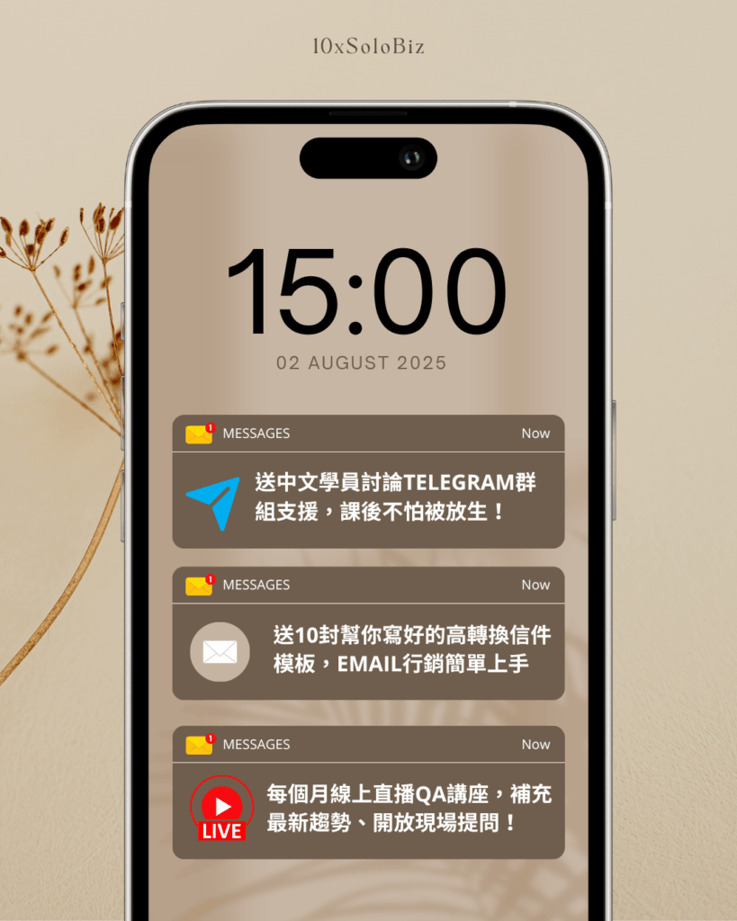 如果下單報名後一天都沒有收到我寄給你的報名成功通知信,請來信 10xsolobiz@gmail.com詢問,