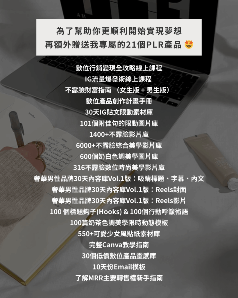 即使你上了課程後,沒有時間或懶得創作自己的數位產品,你也已經擁有了一個高利潤的數位產品了!