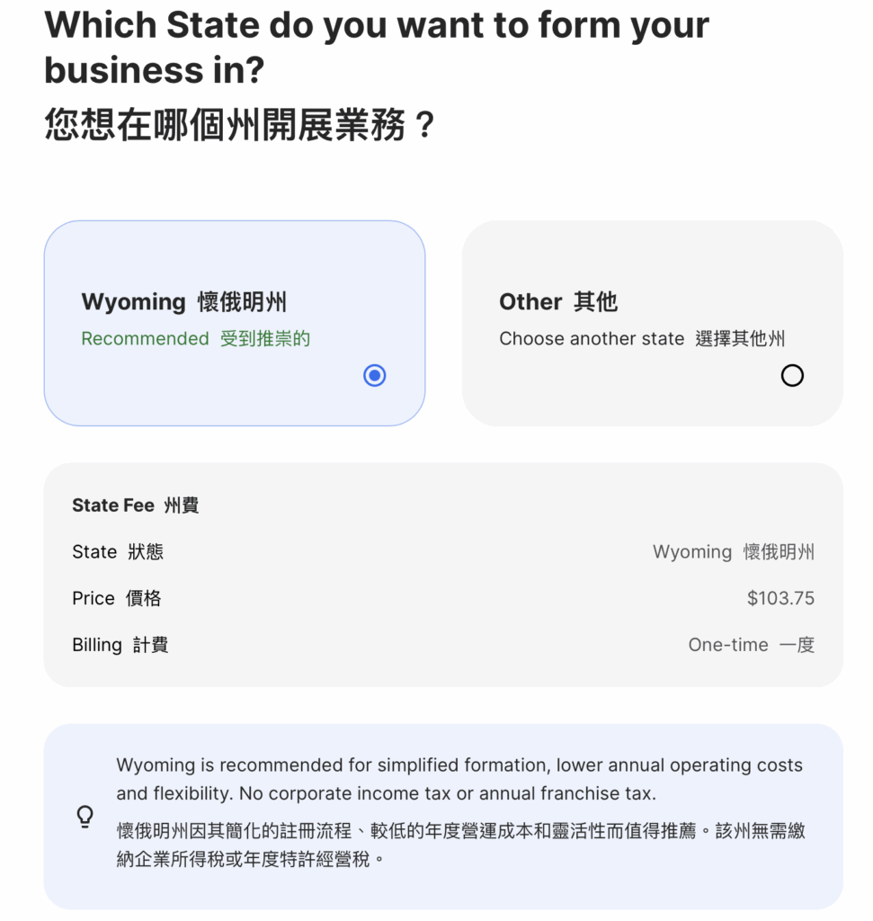 - 公司成立周年月 → 上 Wyoming 州網站繳 Annual Report (約 US $60)