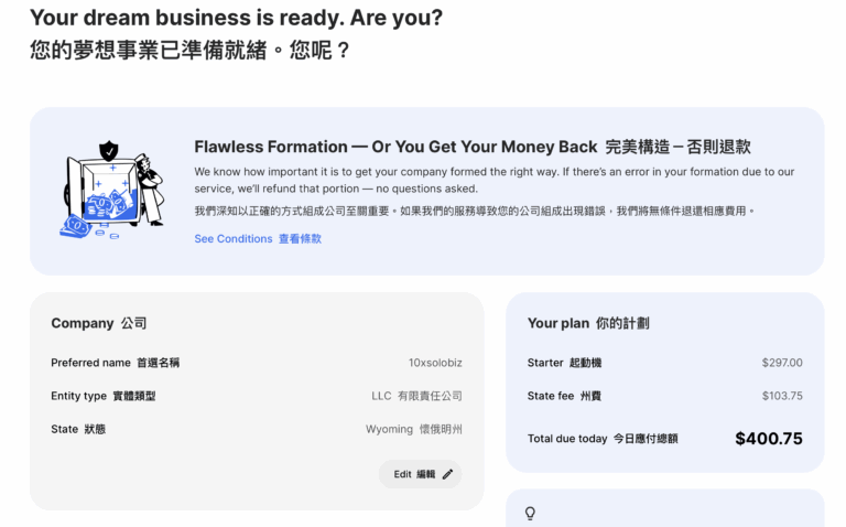 還可以省下上萬元的美國公司台灣代辦、Stripe代辦的費用喔!