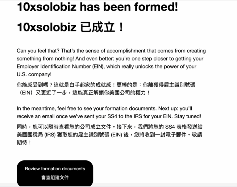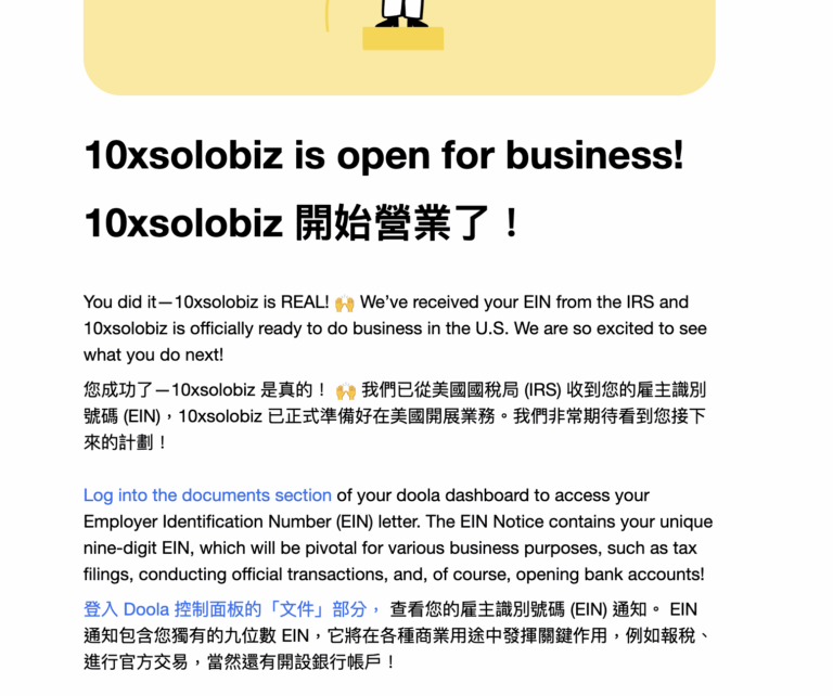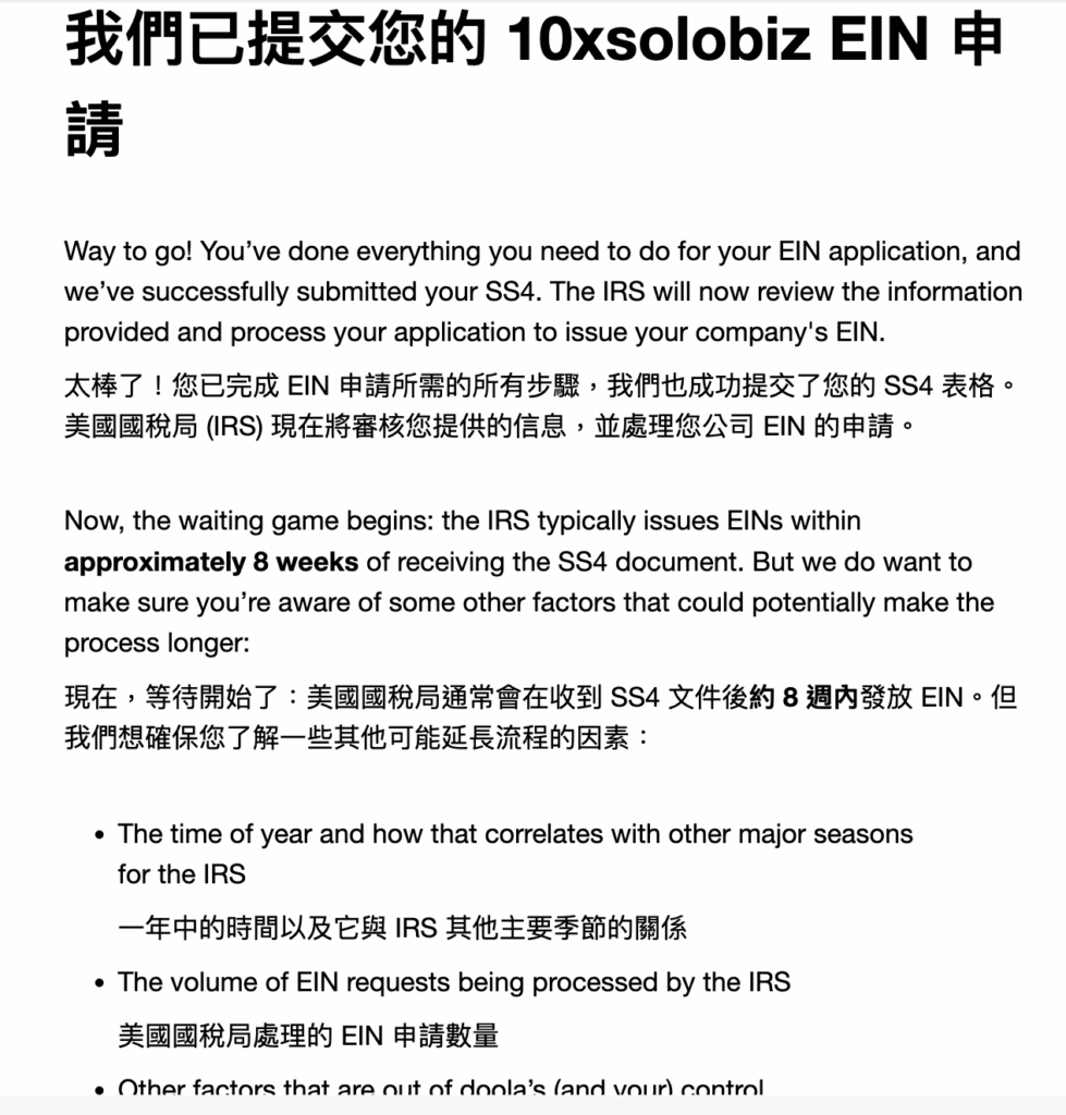 如果你有加購Doola的EIN加急服務,大概能至少加快2週以上可以搞定美國公司👌🏻